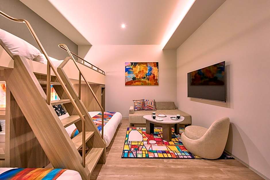 The air-conditioned suite has 1 bedroom and 1 bathroom with a bath and a shower. Guests can make meals in the kitchen that features a stovetop, a refrigerator, kitchenware and a microwave. The suite features a washing machine, a seating area, an electric kettle, a sofa, as well as a flat-screen TV with streaming services. The unit has 4 beds.